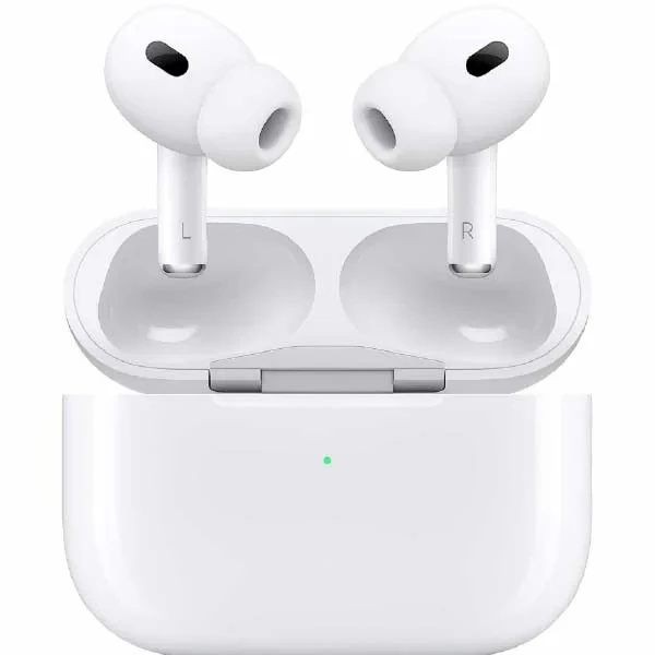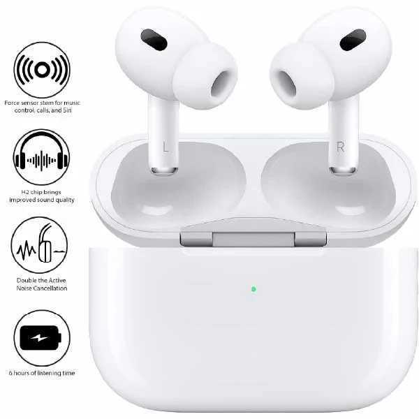 Apple AirPods Pro (2nd Generation, 2023) deliver an exceptional audio experience with enhanced Active Noise Cancellation and Adaptive Transparency. Powered by the H2 chip, they offer improved sound quality and support for Personalized Spatial Audio with dynamic head tracking. The updated USB-C charging case includes a built-in speaker and Precision Finding via the U1 chip. With up to 6 hours of listening time and a more durable IP54 rating, they are ideal for both daily use and workouts.
