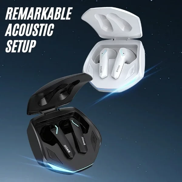 The BWOO BW-92 ANC Stereo Wireless Gaming Earbuds are designed for immersive gaming and sports experiences. Equipped with Bluetooth 5.3, they ensure a stable, low-latency connection for seamless audio. Advanced ENC (Environmental Noise Cancellation) technology minimizes background noise, allowing clear communication during intense sessions. The earbuds feature a Hi-Fi stereo sound profile with deep bass and crisp highs, enhancing audio clarity. With an ergonomic in-ear design and intuitive touch controls, they offer comfort and convenience for extended use.