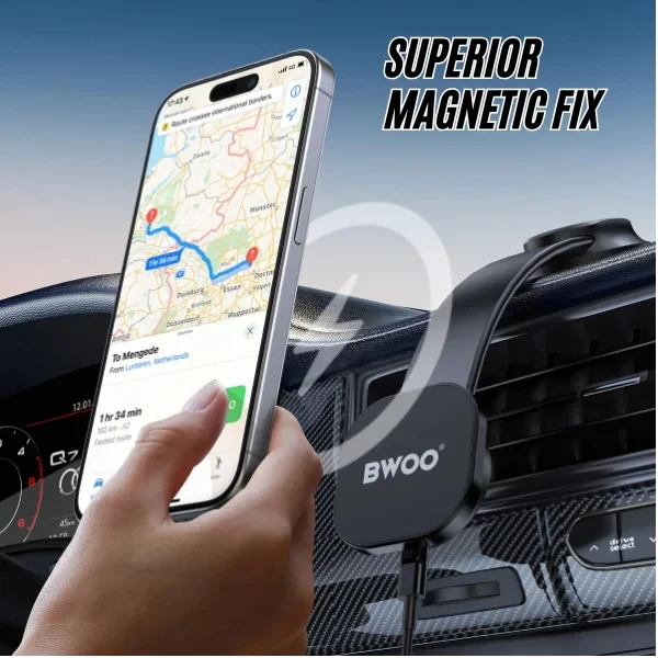 Bwoo Magnetic Car Holder 360° Bendable Magsafe Wireless Charging Black