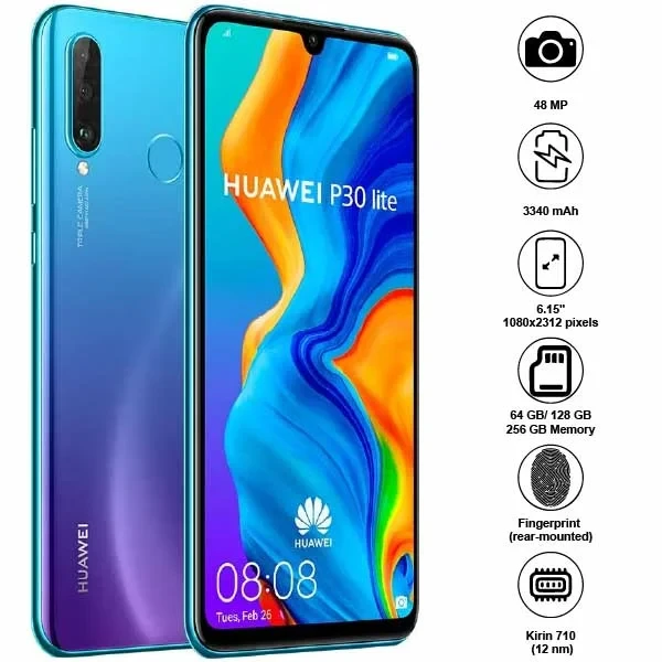 Step into the world of innovation with the Huawei P30 Lite, a smartphone designed to blend style with functionality seamlessly. Boasting a stunning 6.15-inch Dewdrop display, immerse yourself in vivid colors and sharp details whether you're browsing the web, watching videos, or playing games.