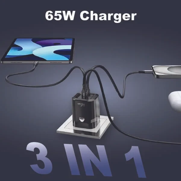 | Box Included | 1 x Mobitel 65W 3-in-1 Fast Charger, 1 x 60W Fast USB C-to-C Cable |
