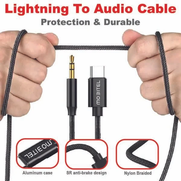 Mobitel USB C to Aux 3.5mm Audio Jack Cable, 1.2M Type C to Audio Nylon Braided Cable,Headphone Cord Car Stereo Compatible with Samsung, iPhone, iPad