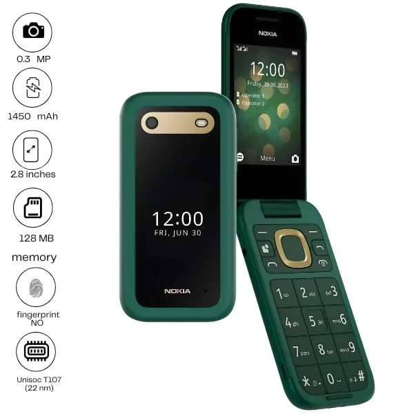 Elegant Flip Design: The Nokia 2660 Flip features a timeless flip phone design that is both compact and durable. Its sturdy hinge ensures longevity, while the flip mechanism adds an element of nostalgia and protects the screen.