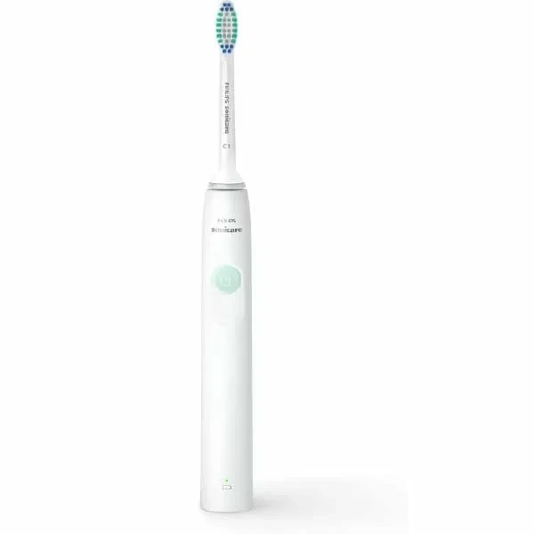 The Philips 2100 Series Sonic Electric Toothbrush uses advanced Sonic technology to deliver up to 31,000 brush strokes per minute for a deep, effective clean. It helps remove plaque and improve gum health more efficiently than a manual toothbrush. The slim, ergonomic design ensures comfortable handling, and the built-in timer encourages proper brushing habits. A great choice for everyday oral hygiene.