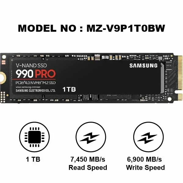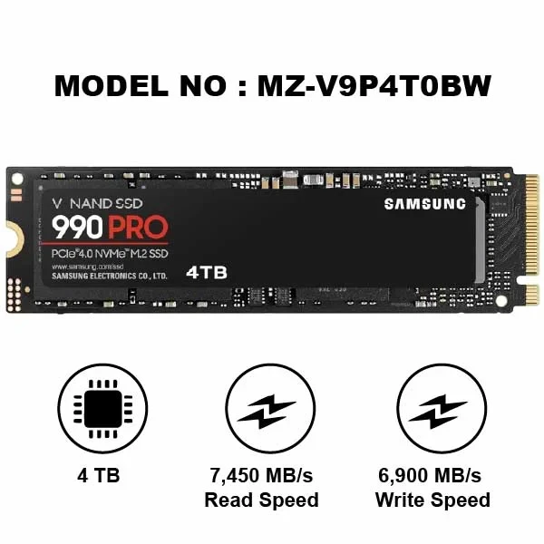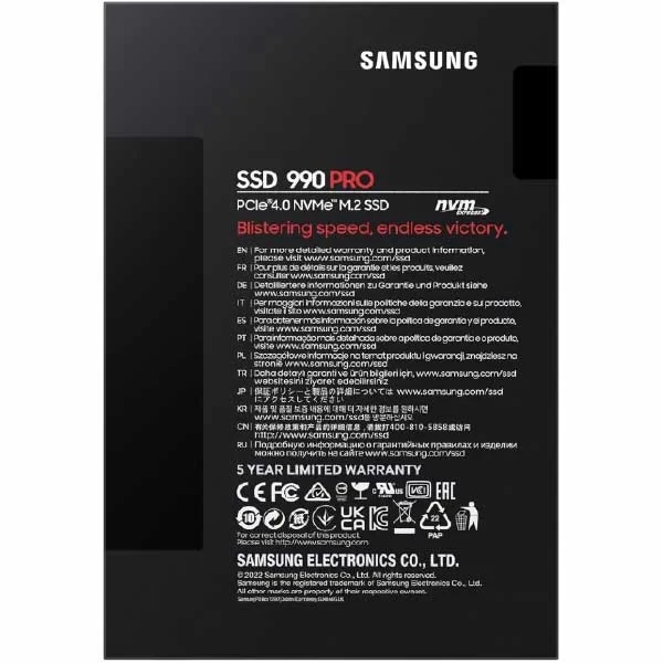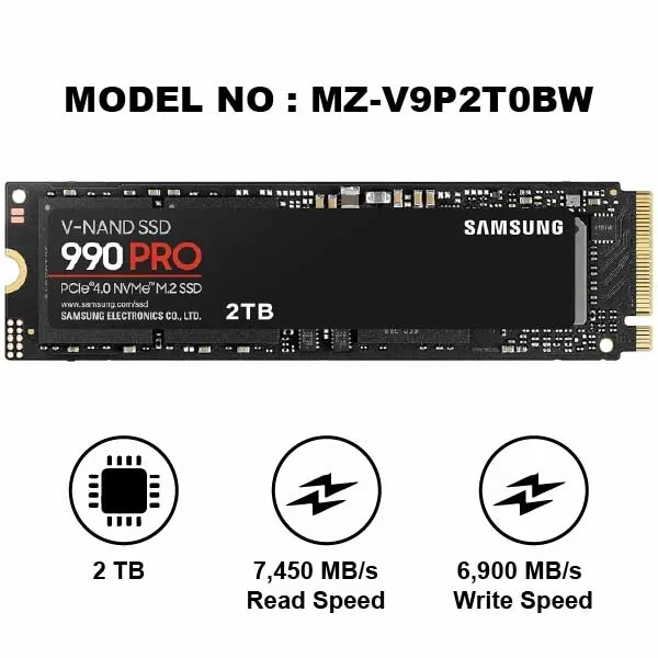 Samsung 990 PRO NVMe M.2 SSD PCIe 4.0, 7,450 MB/s read, 6,900 MB/s write 2TB Black