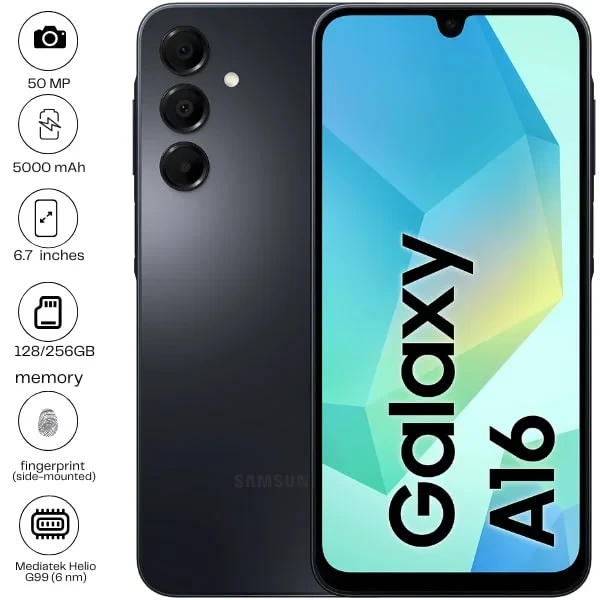 The Samsung Galaxy A16 (2024) is an affordable smartphone offering a 6.6-inch PLS LCD display with a 1080 x 2408 pixels resolution. It features a 5,000 mAh battery with 15W fast charging support, ensuring long-lasting performance. Powered by a Mediatek Dimensity 700 chipset, it offers smooth performance for daily tasks. The device also has a triple-camera setup (50MP primary) for decent photography. Its sleek design and robust features make it a great choice for budget-conscious users.