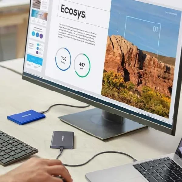 • High-speed data transfer with read speeds up to 1,050 MB/s and write speeds up to 1,000 MB/s, using USB 3.2 Gen 2 and PCIe NVMe technology.